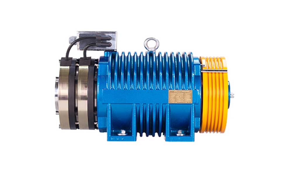 We use precision made High Torque Permanent Magnet Synchronous Motor gearless traction machines. These Machines are highly efficient and consumes less Power as compared to Geared machines. As there is no Reduction gearbox, the machine ensures high efficiency. These machines are Sealed for life and do not require Oil Change. These machines also provide a smooth ride for the passengers as there is low noise and vibrations as compared to a geared machine. Most of the time the gearless machine is fitted with 2:1 roping which reduces the Kilowatt rating of the Machine required for carrying certain amount of load resulting in better efficiency. These Machines save upto 30% power as compared to geared Machine. This Machine can be used for Machine Roomless applications.